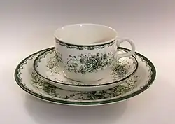 Another of Rörstrand's long-running dinnerware sets was "Green Anna" (Swedish: Gröna Anna or Grön Anna). The Gothenburg Porcelain Factory produced the design starting in 1926. Ostindia is an example of one of the factory's popular designs; it is still made today.