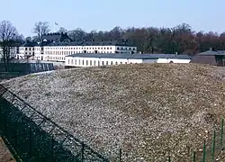 After an "Associations contract between all concerned in the Swedish Porcelain works, which will be established at great Rörstrand in the Delft manner" was signed in 1726, a porcelain factory was built at the castle of Rörstrand.[1] The factory had indeed been given the privilege to produce true porcelain, but faience was the only ware that was made until the 1770s. In 1758, the rival manufactory at Marieberg began to produce porcellanous stoneware. High production costs, a small market, and intense competition from imported Chinese porcelain kept Rörstrand from trying to copy Marieberg's goods.