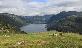 Røldalsvatnet is a lake in Ullensvang Municipality in Vestland county, Norway. The 6.99-square-kilometre (2.70 sq mi) lake is located about 35 kilometres (22 mi) south of the town of Odda. The village of Røldal is located at the northern tip of the lake and the village of Botnen is located at the southern end. The European route E134 highway runs along the northern end of the lake, and the Norwegian National Road 13 runs along the western shore of the lake.[1]