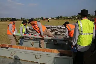 The R-Han 122B rocket program began in 2014 using APBN funds and it underwent the first dynamic test in June 2015 as the implementation of the Consortium in 2014. On 20 August 2015, the second dynamic test was carried out, firing 6 rockets with an Indonesian Marine Corps' RM 70 MLRS.[9] The R-Han 122B underwent a third dynamic test on January 27 to 29, 2016 at Tempursari Beach Lumajang, East Java with visitors from the Indonesian Ministry of Defense and various Indonesian defense companies. This dynamic test is ground to ground using several types of warhead loads, namely 4 inert or dummy units, 9 smoke units, 8 sharp units, and 4 telemetry units. Dummy loads and smoke are launched to see the dropping point, sharp payloads are launched as a simulation of the real condition of the R-Han 122-B rocket, and telemetry payloads are used to determine the rocket trajectory. From the test results, the area where the rocket fell was successfully monitored by the observer to be in the range of 22–23 km (14–14 mi) for an elevation angle of 30° and a range of 25–26 km (16–16 mi) for an elevation angle of 50°.[10]