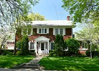 The R.R. and Antoinette Louden House, also known as the Thomas A. and Dorothy C. Louden House, is a historic residence located in Fairfield, Iowa, United States. R.R. (Roy) Louden was the highly successful manager of the Louden Machinery Company advertising department in the 1920s, and he served as the corporation's secretary from 1931 until his death in 1951.[2] He and his wife Antoinette had this house built in 1925. He lived here until his death in 1951. Their son Thomas and his wife Dorothy lived in the house after his parents. Thomas became general legal counsel for the company in the 1940s. The house is 2½-story, brick Colonial Revival with a side gable roof. It features a wall chimney on the east elevation, a single-story solarium, and a single-story porch on the main facade. An addition was added to the rear of the house in 1956. A two-car attached garage was built onto the addition in the 1980s. The house was listed on the National Register of Historic Places in 1999.[1]