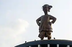 Laxman also created a popular mascot for the Asian Paints Ltd group called "Gattu" in 1954.[21][22] He also wrote a few novels, the first one of which was titled The Hotel Riviera.[23] His cartoons have appeared in Hindi films such as Mr. & Mrs. '55 and a Tamil film Kamaraj. His creations also include the sketches drawn for the television adaptation of Malgudi Days[24] which was written by his elder brother R. K. Narayan, directed by Shankar Nag, and a Konkan coast based Hindi sitcom, Wagle Ki Duniya. Laxman also drew caricatures of David Low, T. S. Eliot, Dr. Rajkumar, Bertrand Russell, J. B. Priestley and Graham Greene.[23]