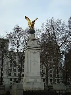The Royal Air Force Benevolent Fund was originally known as the Royal Air Force Memorial Fund as one of their charitable objects was to raise a memorial to airmen who died in the First World War. The Royal Air Force Memorial was completed in 1923. The monument, in Portland stone surmounted by a gilded eagle, can be seen on Victoria Embankment.[5]