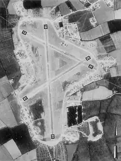US personnel started to arrive in January 1944 to prepare for the 313th Troop Carrier Group scheduled to transfer from Trapani/Milo Airfield, Sicily. On 5 February it opened as a USAAF IX Troop Carrier Command station flying four squadrons of Douglas C-47 Skytrains. Operational squadrons and fuselage codes were:
