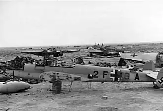 ![]() Abandoned German aircraft at Gambut after its recapture by the Allies (December 1941) | |