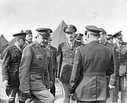 Sometimes supported ground forces and struck interdictory targets. Attacked coastline defences in June 1944 in preparation for the Normandy invasion and hit marshalling yards and choke points during the landing on D-Day. Bombed enemy positions in support of ground forces at Saint-Lô in July 1944. Attacked German communications and fortifications during the Battle of the Bulge, December 1944-January 1945. Bombed troop concentrations and communications centres in Germany and France, March–April 1945, to assist the final thrust into Germany.