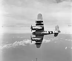 In September 1942 it became the base for the North Coates Strike Wing[1] formed from 143, 236 and 254 Squadrons, flying the Bristol Beaufighter as a heavy fighter, bomber and "Torbeau" torpedo bomber variants, to attack enemy shipping in the North Sea.[2] The first operation of the Strike Wing took place on 20 November 1942 when Beaufighters from 236 and 254 Squadrons took off to attack a convoy of twelve to sixteen ships heading towards Rotterdam. The weather was poor, the squadrons lost contact with each other and the convoy was protected by Focke-Wulf Fw 190 fighters. Only three enemy ships were damaged but three Beaufighters were shot down and four so badly damaged that they crashed or made forced landings.[3] The Strike Wing was promptly withdrawn from service for intensive training, during which time, between November 1942 and early 1943, the east-west concrete runway was laid.[2][1]