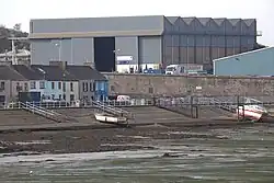 The two large 'B' type hangars have survived and are now both listed buildings.[52][53] Other parts of the dockyard, such as the spillways have been lost in the reconstruction of the dock for the cross Irish Sea ferry to Rosslare.[54]