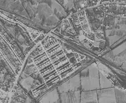 ![]() Aerial view of RAF West Ruislip in 1945 - RAF Blenheim Crescent is to the north-east of the railway line | |
