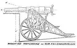 - Diagram showing gun on block trail carriage