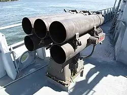 The RBU-1200 (Russian: Реактивно-Бомбовая Установка, Reaktivno-Bombovaja Ustanovka; reaction engine-bomb installation & Смерч; waterspout) is a anti-submarine rocket launcher. The weapon system is remotely similar to the British Hedgehog anti submarine mortar launcher from the Second World War.
