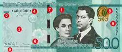 500 Pesos | Green | Salomé Ureña and Pedro Henríquez Ureña | Central Bank of the Dominican Republic | |