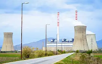 The power plant is the primary source of electrical power in North Macedonia, providing for 70% of the country's electricity production. The plant, which was built from 1982 to 1988, generates around 4.34 million megawatt hours of electricity per year.[2] It is regulated by the Balkan Environmental Regulatory Compliance and Enforcement Network (BERCEN).