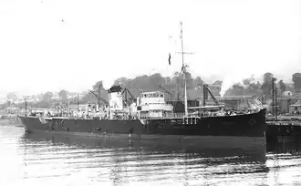 RFA Belgol departed from Colombo, Ceylon on 4 January 1944 as a member of Convoy JC 32.[3] The convoy arrived at Calcutta, India on 13 January,[15] but the ship left the convoy and put in to Trincomalee, Ceylon, arriving on 7 January. RFA Belgol departed from Trincomalee on 12 March, escorted by HMAS Cessnock. The two ships arrived at the Addu Atoll on 14 March.[3] RFA Belgol departed from the Addu Atoll on 6 April as a member of Convoy XC 18, which arrived at Colombo on 9 April.[16] It sailed the next day with Convoy JC 44, which arrived at Calcutta on 17 April.[17] RFA Belgol left the convoy, arriving at Trincomalee on 17 April.[3]