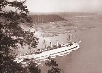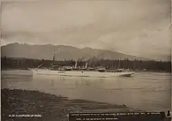 RMS Empress of India was an ocean liner built in 1890-1891[1] by Naval Construction & Armaments Co, Barrow-in-Furness, England for Canadian Pacific Steamships.[2] This ship would be the first of two CP vessels to be named Empress of India,[3] and on 28 April 1891, she was the first of many ships named Empress arriving at Vancouver harbor.[4]
