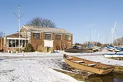 The main workshop, built in 1916, survives as the main building of the local sailing club.[8] To the west of the remaining buildings and putting green is evidence of a compass rose, or compass platform.[20] This was a circular device which allowed for the calibration of the aircraft's onboard compass in the days before GPS systems became available. The aircraft would be swung through 360 degrees and calibrated to true north.[21][22]