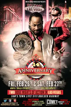 ROH 14th Anniversary was the two-night 14th ROH Anniversary Show professional wrestling pay-per-view (PPV) event produced by the American wrestling promotion Ring of Honor (ROH). It took place on February 26 and 27, 2016 at the Sam's Town Live in the Las Vegas suburb of Sunrise Manor, Nevada. It was the fourteenth event under the ROH Anniversary name. The first night was a pay-per-view broadcast, and the second night was a set of tapings for ROH's flagship TV show Ring of Honor Wrestling.