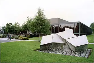 The building is on two floors, above ground are the various programme offices, and below ground covering a greater area are the studios, thirteen in all. The studios have been built underground for greater soundproofing.[7] The largest, Studio 1, is 340sq metres and at 10m high it reaches to the top of building. This studio was designed for live orchestral performances and other large productions, and incorporates an elevated audience seating area. The other twelve studios are grouped around studio 1 and a small courtyard which extends up through the building giving daylight to the below ground corridors and control rooms. The courtyard contains a bust of Seán Ó Riada a former assistant director of Radio Éireann. As well as the studios and their respective control rooms the subterranean floor of the building contains a Master Control Room, switching racks, computer servers, and tape archives.