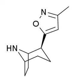 - ^ Cheng J, Izenwasser S, Zhang C, Zhang S, Wade D, Trudell ML (April 2004). "Synthesis and nicotinic acetylcholine receptor binding affinities of 2- and 3-isoxazolyl-8-azabicyclo[3.2.1]octanes". Bioorganic & Medicinal Chemistry Letters. 14 (7): 1775–8. doi:10.1016/j.bmcl.2004.01.025. PMID 15026069.