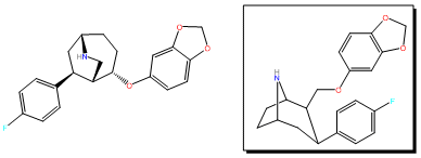 - ^ a b Keverline-Frantz KI, Boja JW, Kuhar MJ, Abraham P, Burgess JP, Lewin AH, Carroll FI (January 1998). "Synthesis and ligand binding of tropane ring analogues of paroxetine". Journal of Medicinal Chemistry. 41 (2): 247–57. doi:10.1021/jm970669p. PMID 9457247.