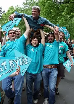 In his 2005 reelection campaign Rybak defeated challenger (and fellow DFLer) Peter McLaughlin by nearly 25 percentage points,[12] 61.5% to 36.7%.[13] He celebrated with another crowd-surf.[14]