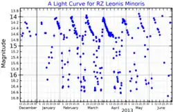 - ^ Robertson, J. W.; et al. (1994), Shafter, Allen W. (ed.), "The Unusual Long-Term Repetitive Light Curve of RZ Leonis Minoris", Interacting binary stars : a symposium held in conjunction with the 105th Meeting of the Astronomical Society of the Pacific, San Diego State University, 13-15 July 1993, vol. 56, San Francisco, Calif: Astronomical Society of the Pacific, p. 298, Bibcode:1994ASPC...56..298R.