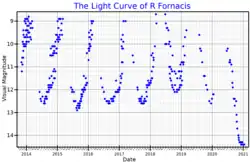 - ^ a b Feast, M. W.; Whitelock, P. A.; Catchpole, R. M.; Roberts, G.; Overbeek, M. D. (1984). "Variable circumstellar obscuration of the carbon star R Fornacis". Monthly Notices of the Royal Astronomical Society. 211 (2): 331–337. doi:10.1093/mnras/211.2.331.