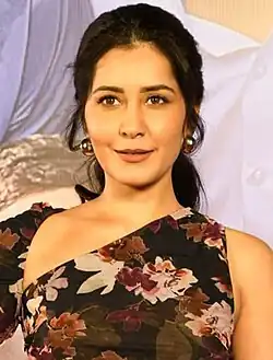 Raashii Khanna (born 30 November 1990) is an Indian actress who works predominantly in Telugu and Tamil films. She made her acting debut in a supporting role with the Hindi film Madras Cafe (2013) and subsequently appeared in Telugu film Oohalu Gusagusalade (2014), which won her the SIIMA Award for Best Female Debut – Telugu.[1][2]