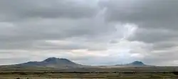 The Rabbit Ears are a pair of mountain peaks in northeastern New Mexico, United States, 8 kilometres (5.0 miles) north of the city of Clayton. The two peaks were a distinctive landmark along the Cimarron Cutoff of the Santa Fe Trail, a major route for westbound settlers in the 19th century. The formation was designated a National Historic Landmark in 1963.[2][3] The name is that of a Native American chief who was killed here in a battle with the Spanish in 1717.[4]