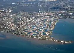 Raby Bay is a bay within Moreton Bay, Queensland, Australia, created by the Cleveland Point headland. It forms the coastline of the suburbs of Cleveland and Ormiston in the City of Redland.[1] It is the site of seagrass meadows that support a population of dugongs. Raby Bay is also the name of a neighbourhood (a canal estate development) within Cleveland that borders the bay.