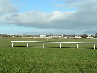 The cricket ground lies within Hereford Racecourse and was established in 1909.[1] It first held a first-class match ten years later when Worcestershire played HK Foster's XI in 1919,[2] played as part of the county's first-class programme after they decided not to enter the County Championship immediately after the First World War.[1] Worcestershire's Humphrey Gilbert claimed 12 wickets in the match for 122 runs.[3] The ground staged a further first-class match in 1919, when the Australian Imperial Forces cricket team visited to play HK Foster's XI,[2] with the Australians Johnny Taylor scoring 138 runs in the Australian Imperial Forces first innings of 405 all out.[4] Worcestershire returned to ground following the Second World War, playing a first-class match against the Combined Services in 1947;[2] Worcestershire's Roly Jenkins and Dick Howorth each taking a five wicket haul in the Combined Services first innings.[5] It would be 34 years before Worcestershire returned to using the Racecourse Ground as an outground, with it hosting one County Championship match each in 1981, 1982 and 1983.[2] Worcestershire played four List A one-day matches at the ground between 1983 and 1987 in the John Player Special League and Refuge Assurance League.[6] The ground was selected as one of the host venues for the 1986 ICC Trophy, a World Cup qualifying competition for associate members of the International Cricket Council. It hosted one game between Argentina and Bangladesh.[7] Following Durham's elevation to first-class status in 1991, Herefordshire replaced them in the Minor Counties Championship for 1992. Between 1992 and 1996, Herefordshire played six Minor Counties Championship matches at the ground,[8] in addition to one match in the 1993 MCCA Knockout Trophy.[9]