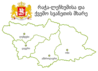 Racha-Lechkhumi and Kvemo Svaneti (Georgian: რაჭა-ლეჩხუმი და ქვემო სვანეთი, Rach’a-Lechkhumi da Kvemo Svaneti [ɾät͡ʃʼäle̞t͡ʃʰχumi d̥ä kʰʷe̞mo̞ s̪ʷän̪e̞t̪ʰi]) is a region (mkhare) in northwestern Georgia with a population of 28,500 (2021[2]), making it the most sparsely populated region in the country. It has a nominal area of 4,954 km2 (1,913 sq mi), of which 4,600 km2 (1,800 sq mi) is de facto controlled by Georgia.[5] The remainder is effectively under South Ossetian control.[nt 2] The region has Ambrolauri as its administrative center and Parmen Margvelidze is governor of the region since June 2021.[6][7] Racha-Lechkhumi and Kvemo Svaneti includes the historical provinces of Racha, Lechkhumi and Kvemo Svaneti (or Lower Svaneti).