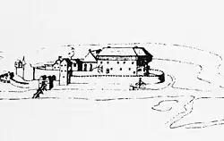 After the death of Duke Vladislaus (1281/1282), the castle fell to his youngest son Przemysław.[23] During his time, the castle was rebuilt, and brick buildings were erected, including the castle chapel.[24] From 1285 to 1287, the Wrocław bishop, Tomasz II, resided in the Racibórz stronghold, and got into conflict with the Wrocław duke Henry Probus.[9][10][21] In 1288, Tomasz II founded a collegiate chapter at the castle chapel, which was an expression of gratitude for the hospitality shown.[16][24][25][26][27][28] This event was described by Jan Długosz in the Chronicles of the Famous Kingdom of Poland:[24]