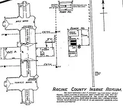 - ^ "Racine County Insane Asylum". The Milwaukee Journal, October 30, 1890, p. 1.