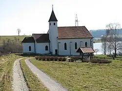 A chapel next to Lake Radehova west of the settlement is dedicated to the Virgin Mary and belongs to the Parish of Lenart. It dates to the 17th century and was extended in the 19th century.[4]