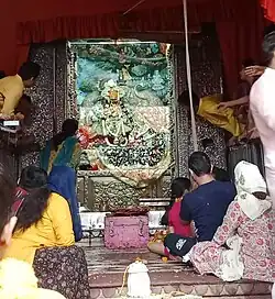 According to popular legend, the deity Radhavallabh was never made by any sculptor. The deity was given to a devotee named Atmadev by Shiva himself because of his arduous devotion and prayers.[2] The Hith Harivansh Mahaprabhu lived 31 years in place called Devavan. In the 32nd year of his age, he left for Vrindavan. On his way to Vrindavan, he was ordered by goddess Radha herself to marry the daughters of Atmadev and took the idol of Radha Vallabhji to Vrindavan with them. As ordered, Hith Harivansh Mahaprabhu married the daughters of Atmadev and Atmadev gifted the idol of Radhavallabh ji to his daughters and Harivansh Mahaprabhu on their marriage.[6]
