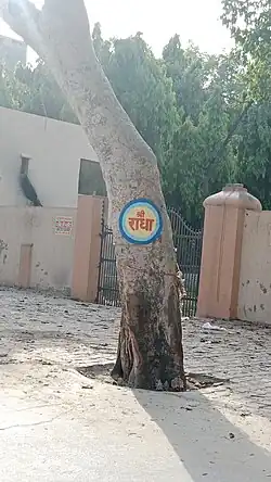 It is common to see the phrase Radhe Radhe written on the walls of houses, on the trunks of trees and printed on the clothes of priests and devotees in the Braj region.[5]