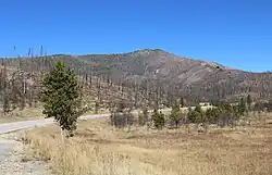 Several magmatic dikes radiate out from the mountain, and some are visible from Colorado State Highway 125, which goes over Willow Creek Pass just west of Radial Mountain.[5]