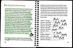 A Mort Aux Vaches Ekstra Extra composition is in effect a collaboration between Goodiepal and the participant, since the study material, in the shape of a school book and musical objects, has been created by him.[14] As such the participant becomes a co-composer by unfolding, according to own skills and preferences, what Goodiepal has begun, and the relationship between sender and receiver is transfigured into a joint authorship with an open-ended relation, also to a potential performance of the score. Performances have mainly taken place when participants have expressed a desire to do so, since the process of completing the Mort Aux Vaches Ekstra Extra exercise is in effect a compositional process in reverse. As such the performance of the work already took place when Goodiepal created his part of the composition, before handing it over to future co-composers.