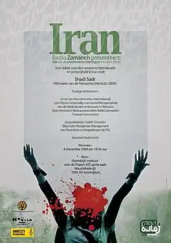 In December 2009 Radio Zamaneh organized a conference about "Human Rights and Press Freedom in Iran" at Amsterdam's Tropical Theatre. The women rights activist Shadi Sadr gave a lecture in this conference.