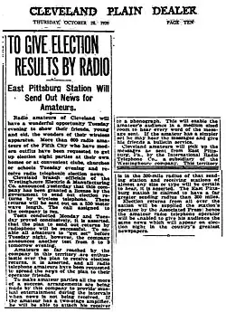 - ^ "'News' Wireless Service on Election Wins Praise", Buffalo Evening News, November 4, 1920, page 2.