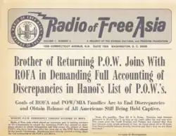 Radio of Free Asia, sometimes called Radio Free Asia, was an anti-Communist radio station created by the Korean Cultural and Freedom Foundation which broadcast from Seoul into North Korea, China, and Vietnam.[1][2][3] In a congressional hearing, General Coulter, then President of the Korean Cultural and Freedom Foundation, declared Radio of Free Asia the principal project of the foundation.[4] It operated from 1966 to early 1970s.