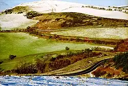 The massif is formed from argillaceous rocks of Ludlow age, i.e. late Silurian around 425 million years ago.[3] The strata are exposed around Harley Dingle and Whinyard Rocks. In 2020 the area was in course of being geologically mapped for the publication of the 'Knighton' 1:50,000 scale geological map by the British Geological Survey, no such work having been undertaken in this area since the middle of the nineteenth century.[4][5]