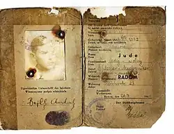 The Radom Ghetto was a Nazi ghetto set up in March 1941 in the city of Radom during the Nazi occupation of Poland, for the purpose of persecution and exploitation of Polish Jews. It was closed off from the outside officially in April 1941.[1] A year and a half later, the liquidation of the ghetto began in August 1942, and ended in July 1944, with approximately 30,000–32,000 victims (men, women and children) deported aboard Holocaust trains to their deaths at the Treblinka extermination camp.[2]