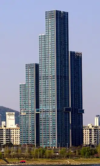 Raemian Caelitus, previously known as Raemian Ichon Rex, is a complex of three luxury high-rise residential towers in Seoul, South Korea. Tower 101 is Seoul's 12th tallest building and the tallest in Yongsan District. The complex was completed in 2015. Overlooking the Han River in Yongsan district of Seoul, the towers are a prominent sight from the banks of the river.