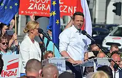 [Rafał Trzaskowski represents Poland's neoliberal, urban and pro-European moderation and was backed by the centre-right Civic Platform (PO) party.] - ^ "Trzaskowski uderza w kpiących z klimatu. "Wszyscy naukowcy się zgadzają"". zielona.interia.pl (in Polish). 9 September 2023. Retrieved 27 August 2024.