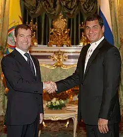 Correa and Russian President Dmitry Medvedev in Moscow, 29 October 2009