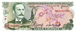 Rafael Iglesias appeared on Costa Rican paper money in the former denomination of 5 colones. This edition was first printed in 1968.