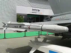 F3 standard Rafales are capable of undertaking many different mission roles with a range of equipment, namely air defence/superiority missions with Mica IR and EM air-to-air missiles, and precision ground attacks typically using SCALP EG cruise missiles and AASM Hammer air-to-surface missiles. In addition, anti-shipping missions could be carried out using the AM39 Exocet sea skimming missile, while reconnaissance flights would use a combination of onboard and external pod-based sensor equipment. Furthermore, the aircraft could conduct nuclear strikes when armed with ASMP-A missiles.[120] In 2010, France ordered 200 MBDA Meteor beyond-visual-range air-to-air missiles (BVRAAM) which greatly increases the distance at which the Rafale can engage aerial targets.[121][122]
