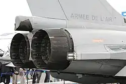 Qualification of the M88-2 engine ended in 1996 and the first production engine was delivered by the end of the year.[127] Due to delays in engine production, the Rafale A demonstrator was initially powered by the General Electric F404 engine.[8][128] In May 2010, a Rafale flew for the first time with the M88-4E engine, an upgraded variant with lower maintenance requirements than the preceding M88-2.[129] The engine is of a modular design for ease of construction and maintenance and to enable older engines to be retrofitted with improved subsections upon availability, such as existing M88-2s being upgraded to M88-4E standard.[127] There has been interest in more powerful M88 engines by potential export customers, such as the United Arab Emirates (UAE).[130] As of 2007, a thrust vectoring variant of the engine designated as M88-3D was also under development.[118]
